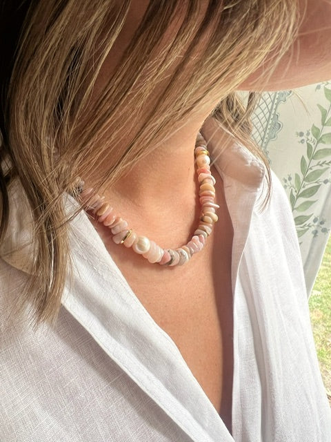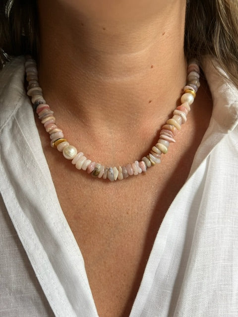 Freshwater Pearls and Pink Opal Stones